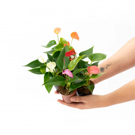 Una planta clásica que siempre se mantiene vigente, se caracteriza por tener hojas en forma de corazón de color verde oscuro, pero sin duda lo más llamativo son sus vistosas inflorescencias acompañadas de brácteas coloridas, generalmente rojas, aunque existen variedades de diversos colores. Es una buena opción para incorporar color a nuestro hogar.
