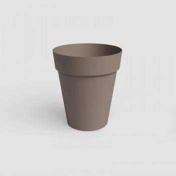 Maceta alta de plástico reciclado, fabricado en polipropileno, ligero, duradero, reciclable y reutilizable, con protección UV y resistente a las heladas. Incluye orificios de drenaje y un tapón en la base. Apto para exteriores e interiores, con una capacidad de 70 l. Se puede complementar con un plato redondo para uso en interiores. Fabricado en Portugal.