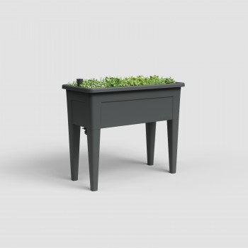 Huerto urbano fabricado con plástico reciclado y polipropileno. Ligero, duradero, reciclable, con protección UV y resistente a las heladas. Cuenta con sistema de autorriego, bandeja de depósito de agua e indicador de nivel de agua. Incluye un grifo para facilitar el drenaje, 4 patas desmontables y un juego de estabilizadores de hierro. Se puede complementar con una tapa translúcida y dos orificios de ventilación. Apto para interiores y exteriores, con una capacidad de 88 l. Fabricado en Portugal.