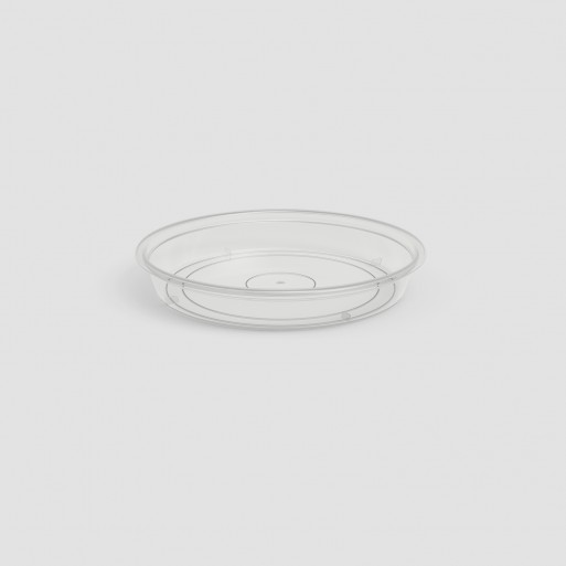 Plato redondo transparente, fabricado con materiales reciclados, ligero, duradero, reciclable y reutilizable, con protección UV, acabado resistente a las heladas e impermeable. Apto para uso en interiores y exteriores. Fabricado en Portugal.